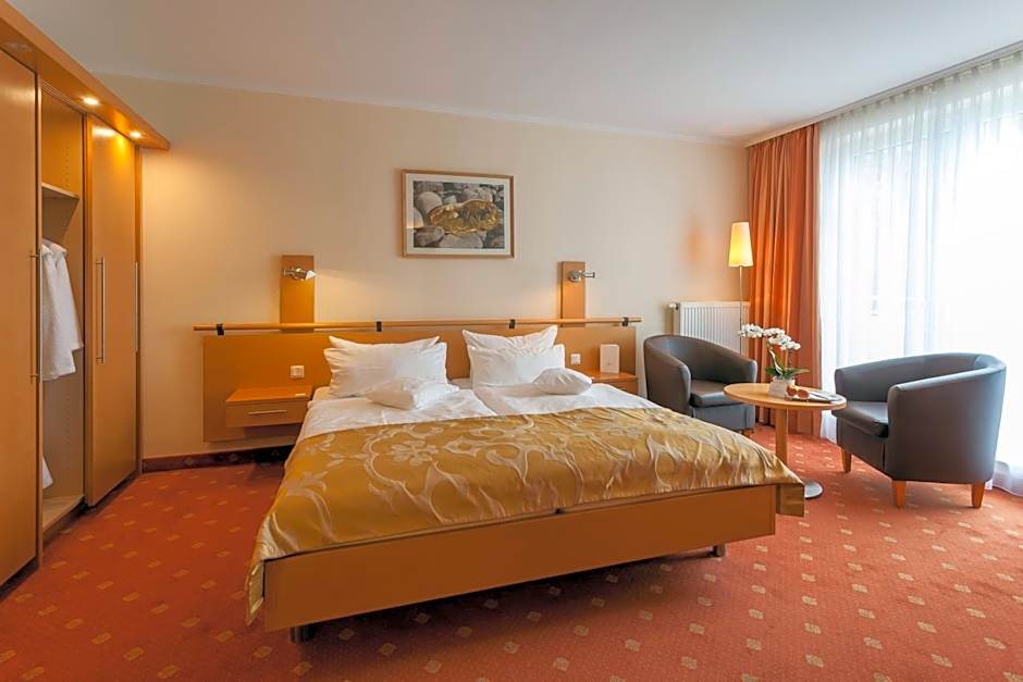 This suite features a sofa and a seating area as well as a south facing balcony. The room rate includes VIP amenity upon arrival, complimentary mini-bar, coffee/tea maker in the room and selection of the own mattress and pillow menu for a personal sleeping comfort.